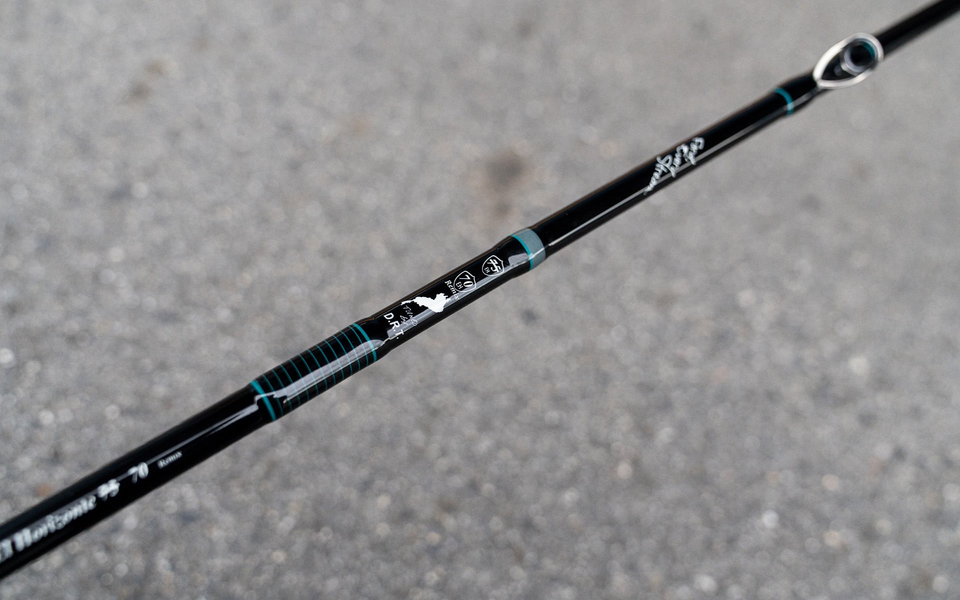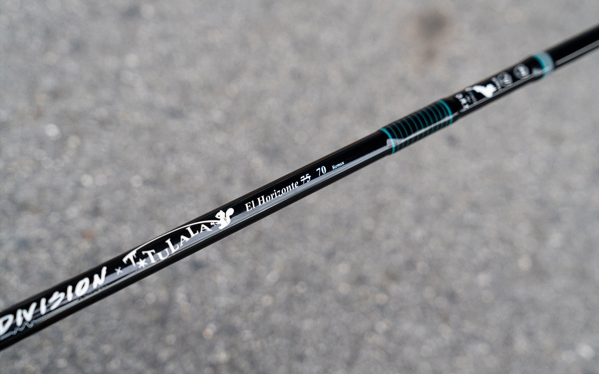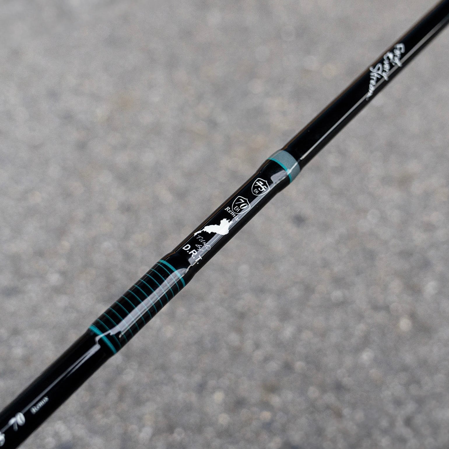 ベースブランクスはエルホリゾンテ75。KLASH9使用前提で軽快性重視のカスタム。5inchショートレングス化、ティップ部パワーダウン、オールチタンガイド~その他DRTオリジナルパーツを使用。パワーレンジ的には73remix / 79remixの間を埋めるモデルで、KLASH9をセンターラインに、JOKER、9inchクラスのソフトスイムベイト、ヘビーカバーフロッグゲームなど。トリッキーなアクション操作、取り回しからくるキャスト精度でGHOST(9oz)まで対応可能。