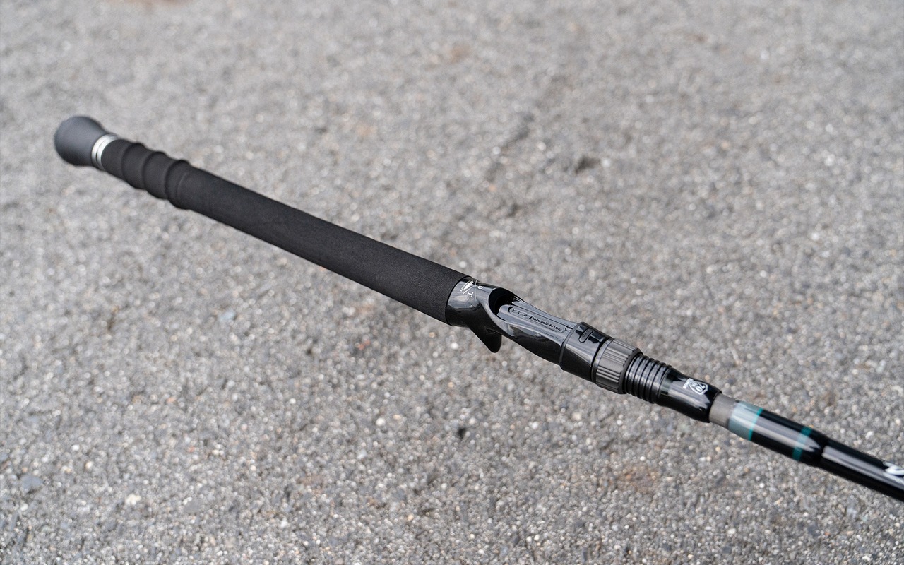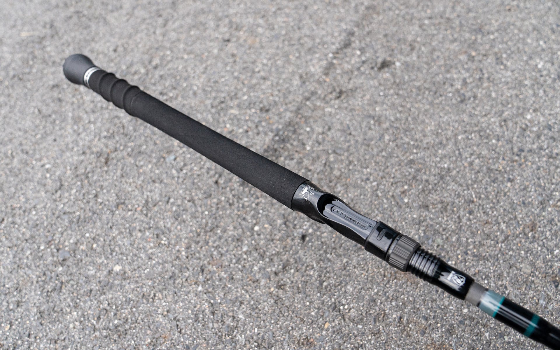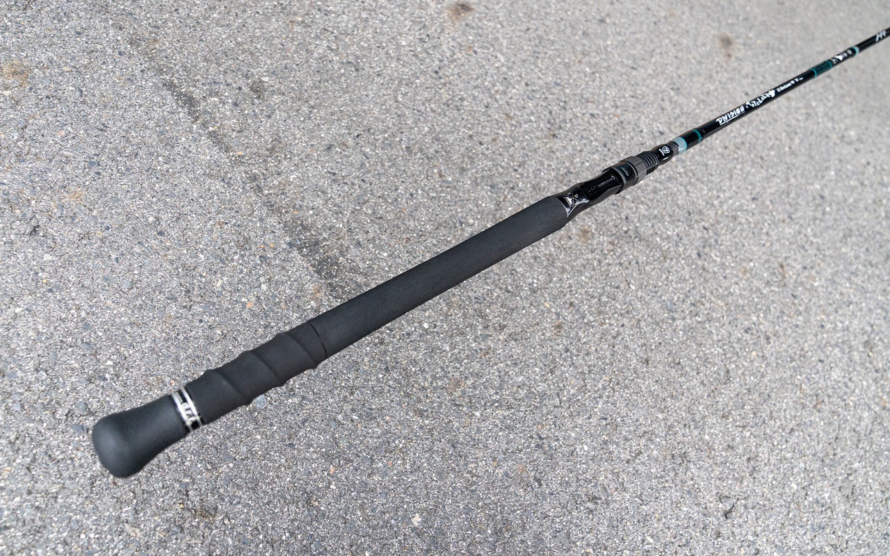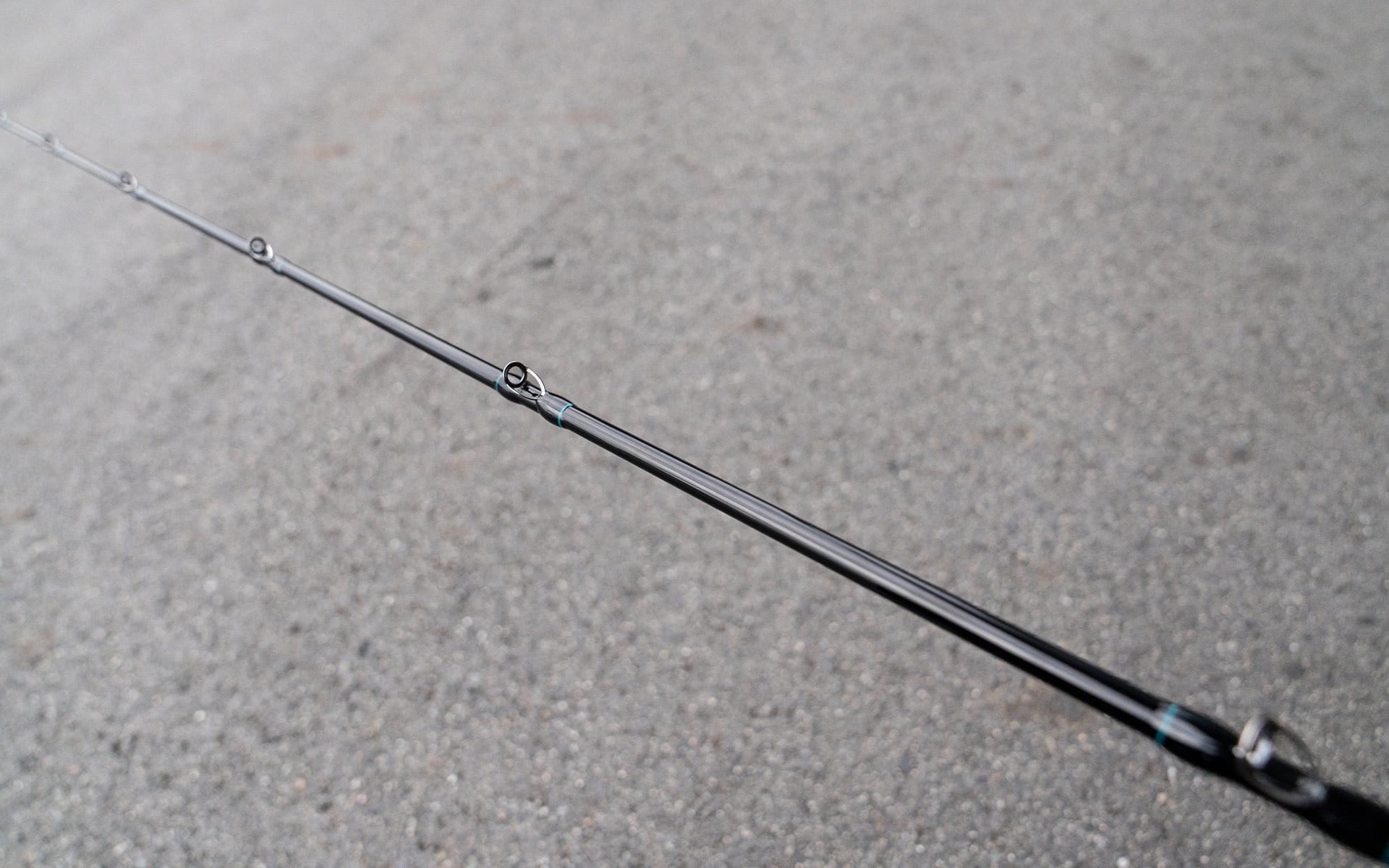 ベースブランクスはエルホリゾンテ75。KLASH9使用前提で軽快性重視のカスタム。5inchショートレングス化、ティップ部パワーダウン、オールチタンガイド~その他DRTオリジナルパーツを使用。パワーレンジ的には73remix / 79remixの間を埋めるモデルで、KLASH9をセンターラインに、JOKER、9inchクラスのソフトスイムベイト、ヘビーカバーフロッグゲームなど。トリッキーなアクション操作、取り回しからくるキャスト精度でGHOST(9oz)まで対応可能。