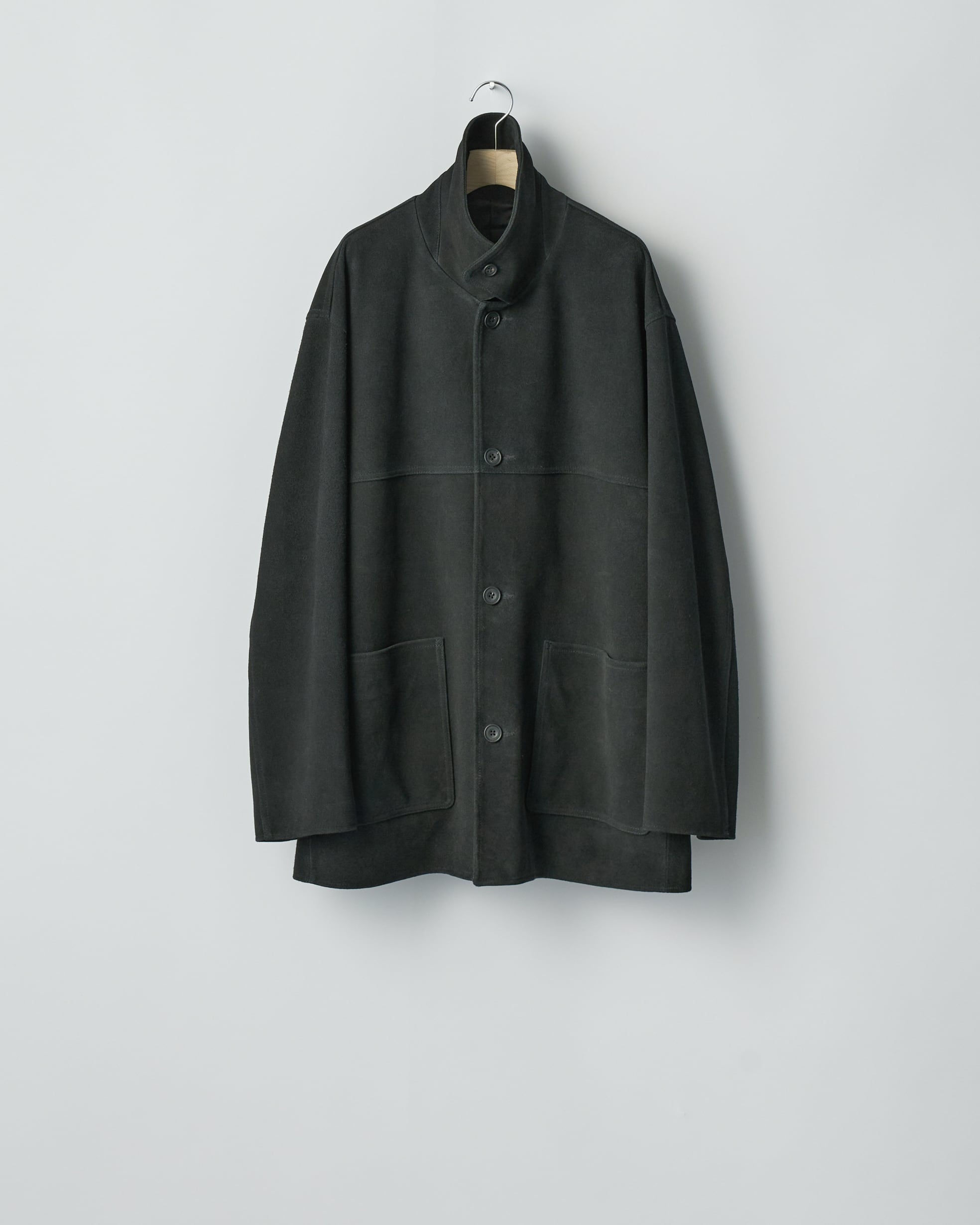 柔らかく、しなやかな風合いの牛革スエードを使用したカージャケット。VINTAGEのカージャケットをベースにミニマルでモダンなシルエット、全体感になるよう各パターン、ステッチを設定。