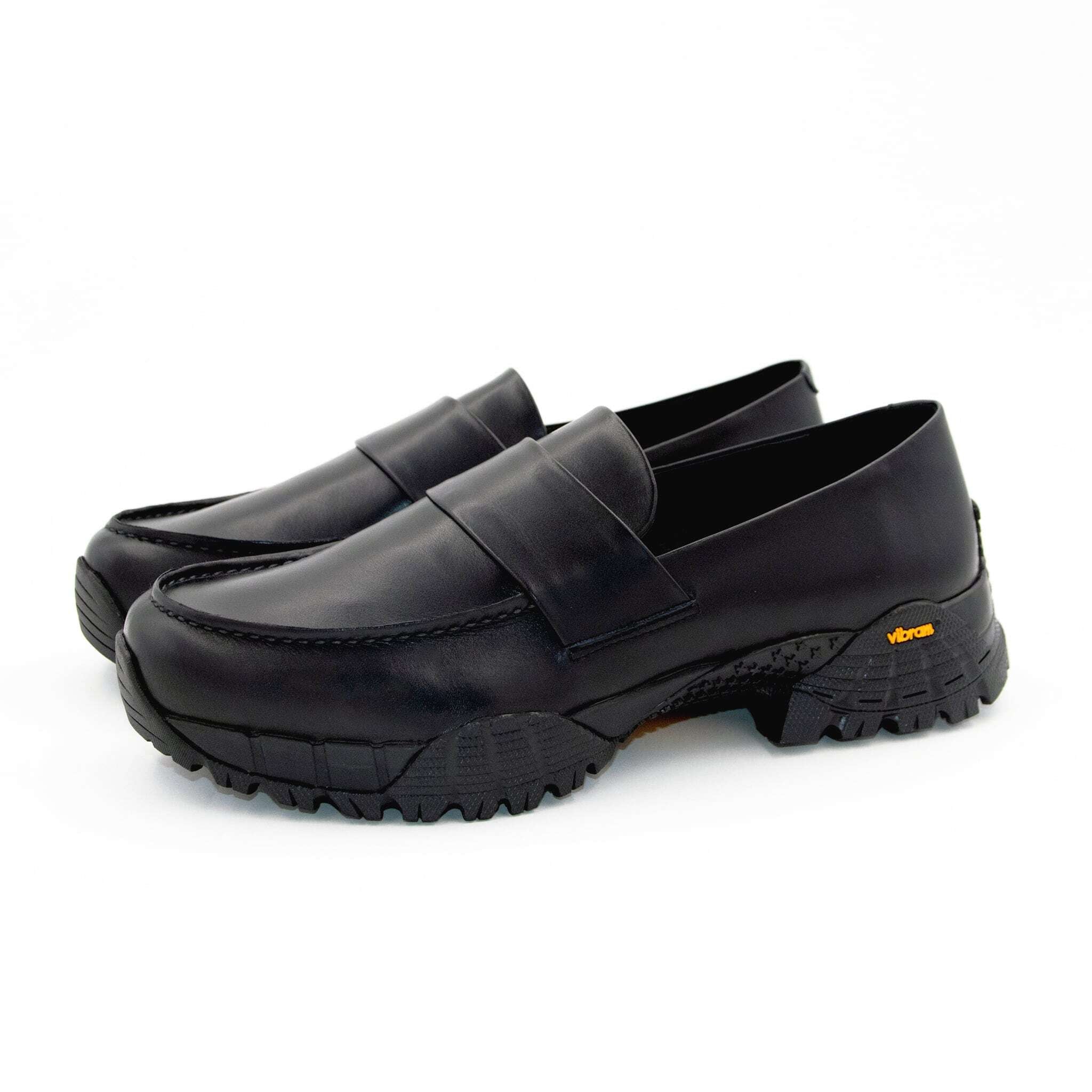 都市を自由に、そしてしなやかに旅する人のための一足。ローファーの洗練されたアッパーデザインに、トレッキング仕様の無骨な アウトソールを融合させた、実用性とデザイン性を兼ね備えたモデルです。 アッパーには、3M 社の ScotchgardTMレザーを採用。雨天はもちろん、 天候の変わりやすいあらゆるシーンに対応する全天候型仕様に仕上げました。アウトソールには、耐久性とグリップ力に優れた Vibram® ソールを搭載。 都市でも自然でも、足元に安心と安定をもたらします。 ローファーならではの上品な表情に、トレッキングソールの力強さをプラ スしたそのデザインは、スーツやセットアップなどのフォーマルな装いにも好相性で、ミニマルかつモダン。日常から旅先、シティから アウトドアまで。YOAK が提案する、流行に縛られない新たな定番の1足です。ヒールの高さは約4〜4.5cm。