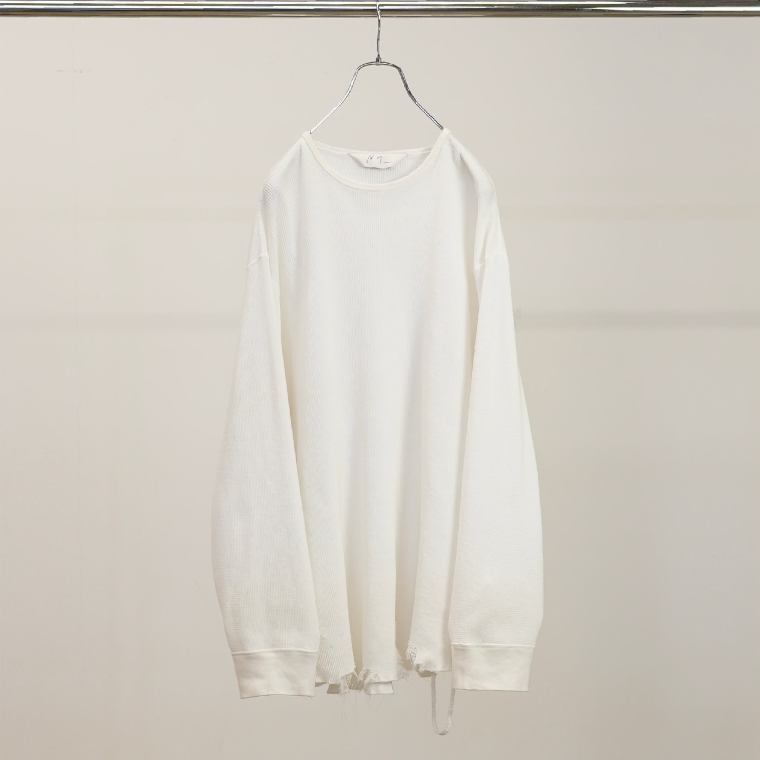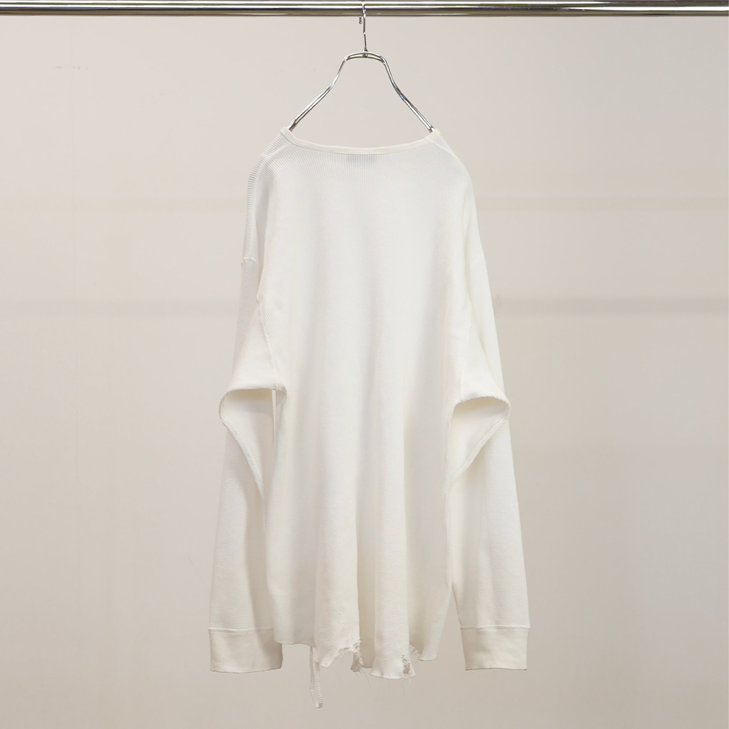 【ANCELLM】 DAMAGE WAFFLE CREW LS "WHITE"