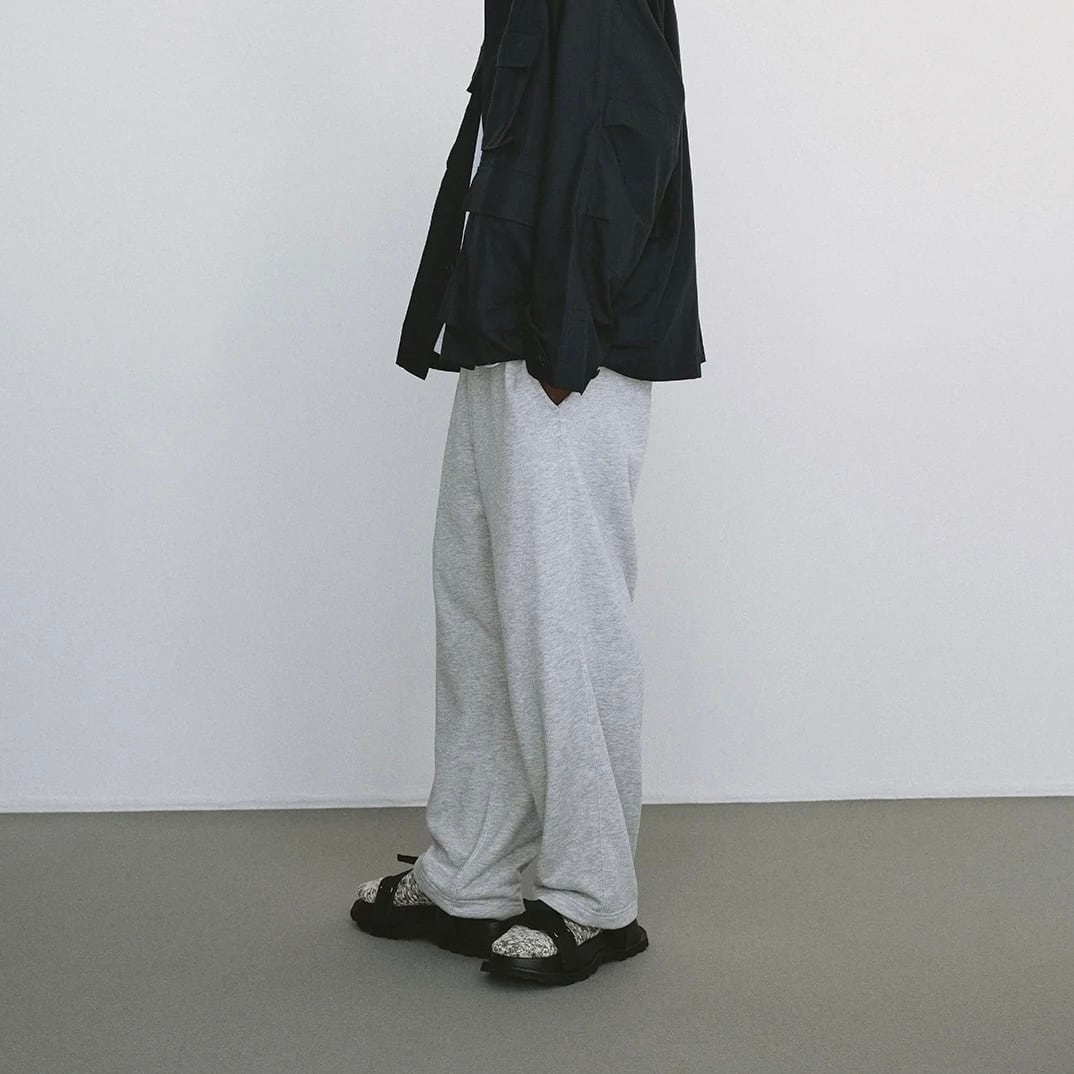 ポリエステルスパン糸を使用した綿タッチのヘビーウェイト裏毛。ポリエステルのため、ボリューム感はあるものの軽量。 綿素材と違い、色落ち等経年変化しにくいところもこのポリエステル裏毛の最大の特徴。シンプルながらも着用した際のサイズバランス、フィッティングにこだわりデザインしたスウェットパンツ。ゆったりとしたシルエットだが、ネックや袖口のリブをキツめに調整し釣りの際に邪魔にならないよう細かいフィッティングにこだわった。 様々なバリエーションで作成したブランドオススメのコレクション。
