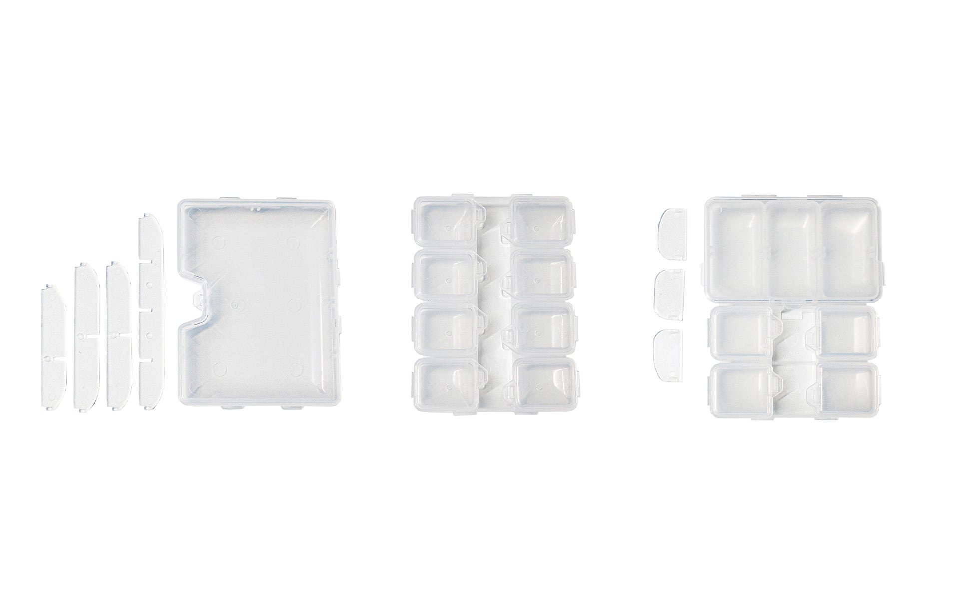 メイホウ社製FB-470/480をベースにカスタム別注。 小型で様々なパーツ収納にぴったりなケースです。インナーケースは3種類付属で用途に合わせて組み換え可能。ケース周囲にはシリコンゴムパッキンを搭載し、防水仕様なので落水時も中身が濡れる事がありません(使用条件によります)。インナー無しで濡れては困るモノを入れるのも可能です。内部の高い気密性により約150g(5.6oz)程度の重さの内容物を収納しても沈まない浮力を備えています。