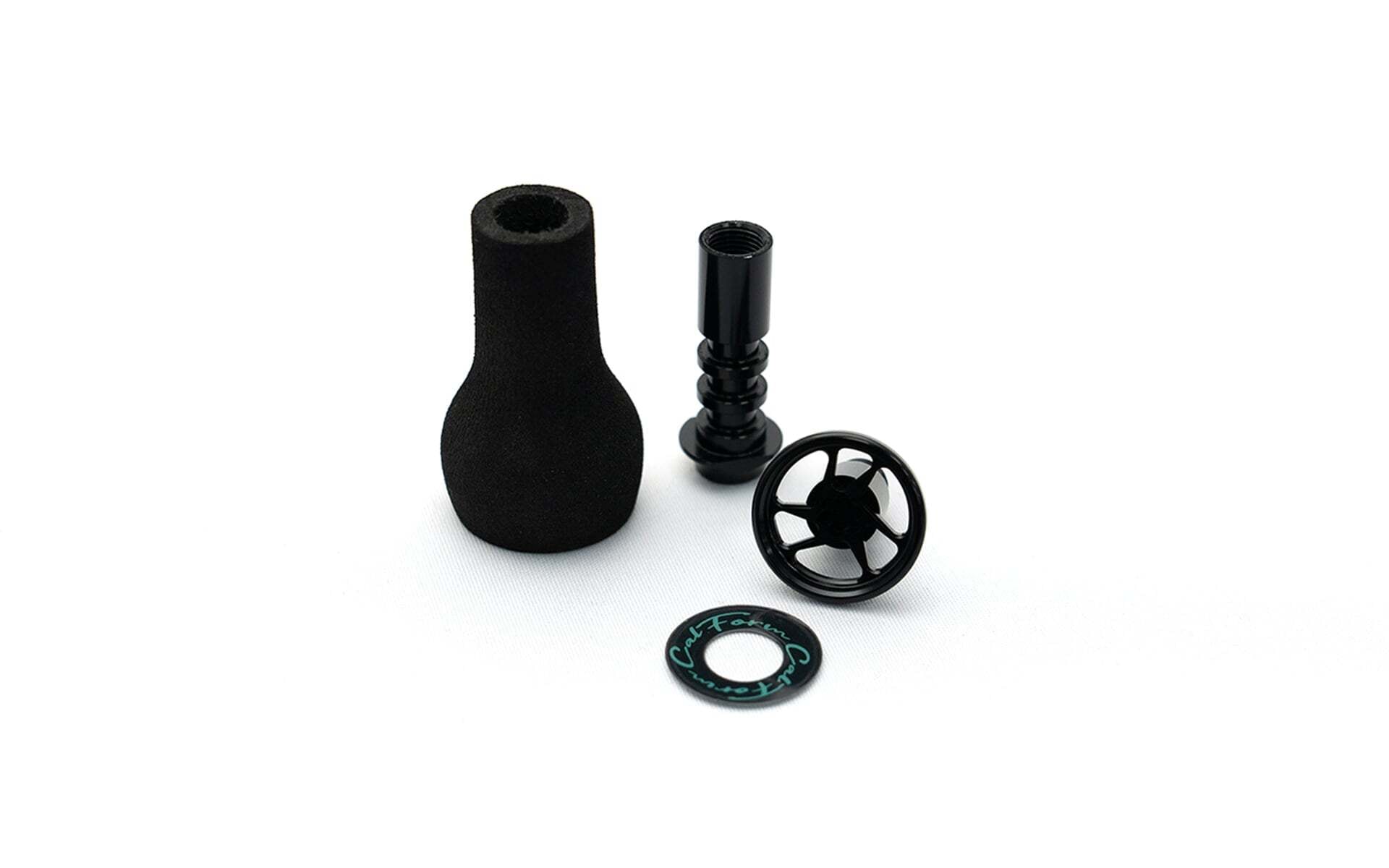 軽量版VARAL KNOB。アルミ部分の肉抜きとノブをEVAに素材変更。従来のKNOBに比べて-20g。アルミ切削2ピースリム・2色アルマイト加工。慣性を武器とし”重さ”と”ハイグリップ”が特徴だったVARIALですが、強度を損なわずに真逆の軽量タイプへとアップデートすることが可能。ノブの根元にノブが固着した際に取り外しやすいように12mmスパナが入るようになっています。