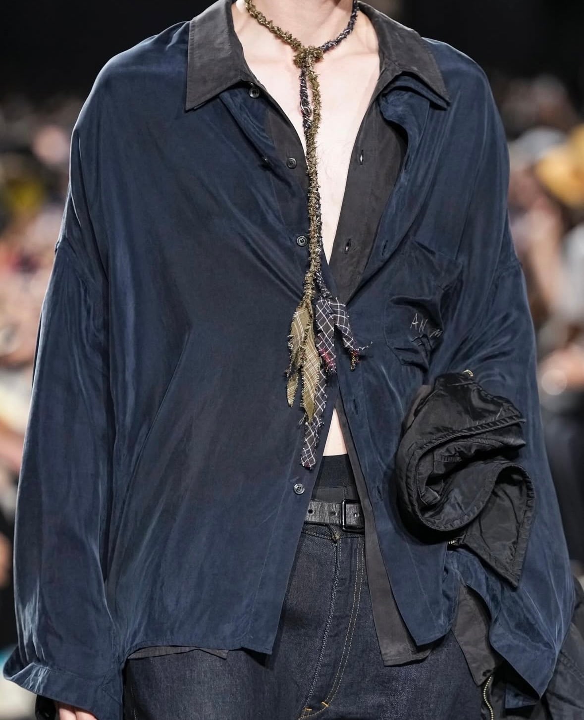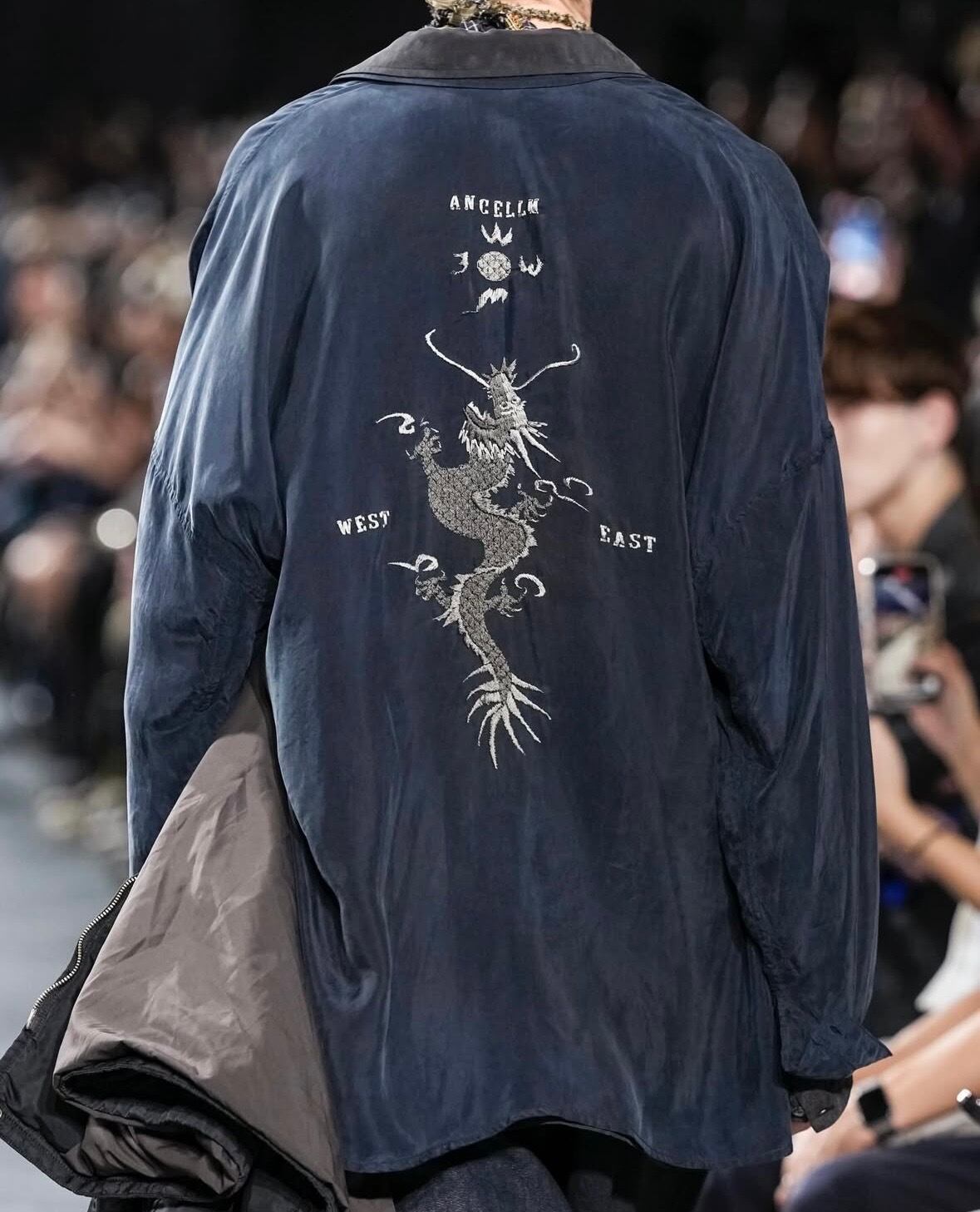 【ANCELLM】 EMBROIDERED SOUVENIR SHIRT "NAVY"