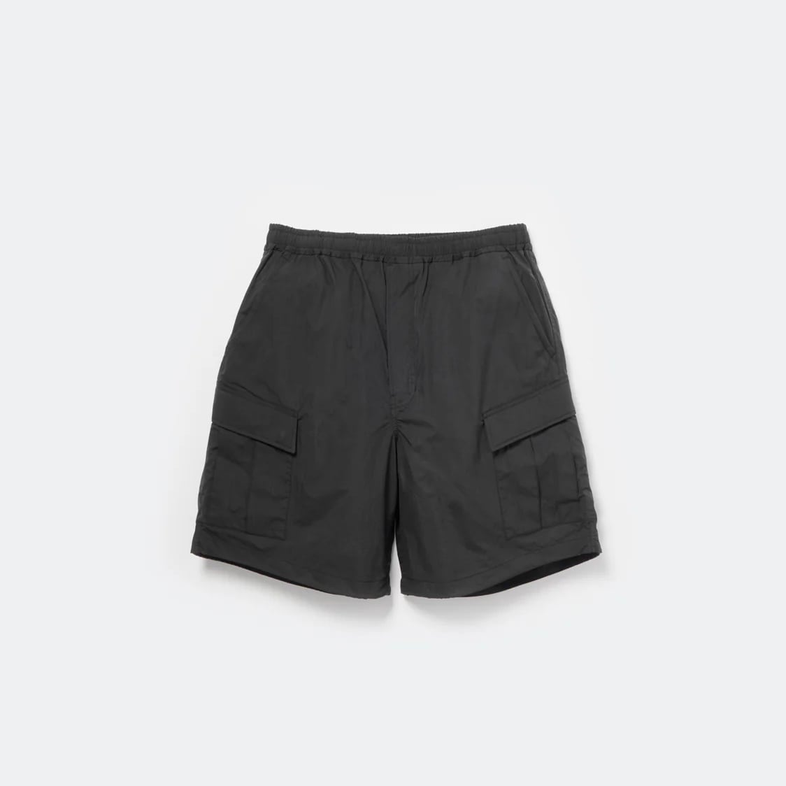 経糸にナイロンポリエステルの割繊糸、緯糸にナイロン糸を使用し、加工工程においてナイロンサイドを高収縮させる事によりシワ感を作り、割繊糸使用による柔らかい風合い、シャンブレー調に表現した独特な雰囲気を演出したヴィンテージ調素材。アメリカ軍のBDUパンツをデザインソースに現代的に機能性を持たせアップデートしたアウトドアショーツ。雨や埃の侵入を防ぐフロントのフラップポケットや、釣りの際座った時に手を入れやすい斜めにカットされたサイドポケット。中にもモバイルフォンを入れることのできる小ぶりなパッチポケットを加えている。裾にドローコードを配し、川や水辺での着用時に便利な機能を加えた。