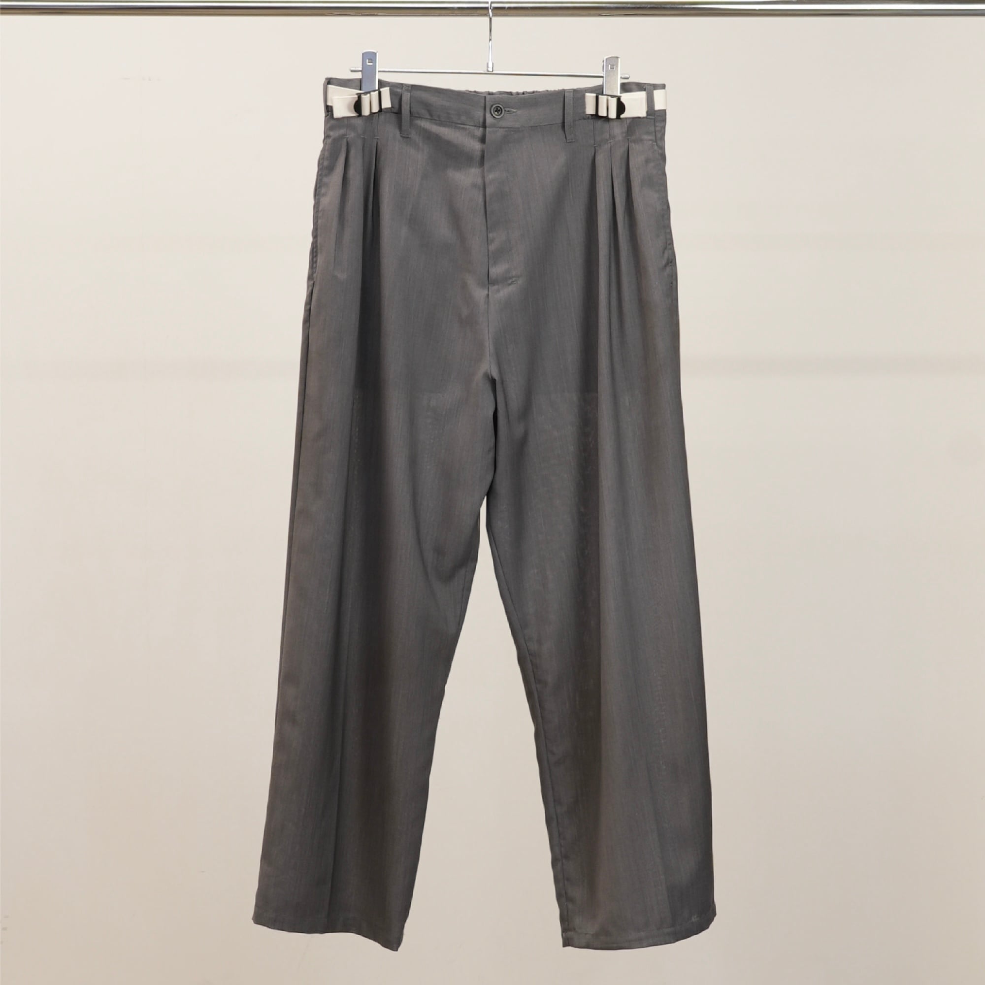 【ANCELLM】 BELTED WOOL SLACKS "GRAY"