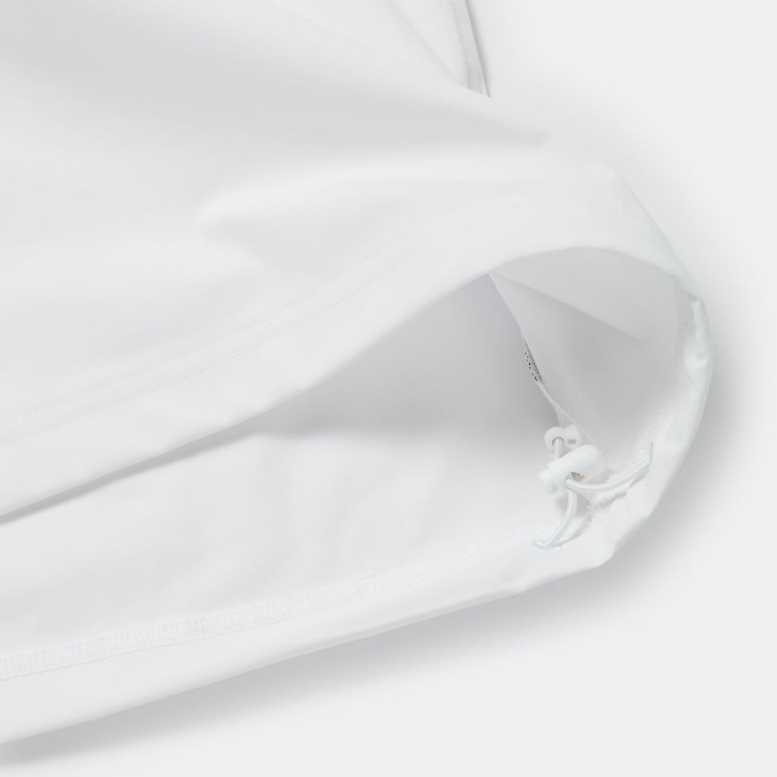 2種類の違うポリエステル原料を使用することで糸にバネのような効果を持たせた糸を使用したハイゲージトリコット素材。程良いストレッチ性に加え、適度な膨らみ感、ハリコシ、軽量感が特徴。スポーティーなライトウェイトTシャツ。クラシックなフリーダムスリーブを採用、裾にドローコードを配し、調整が可能。程良いストレッチ性がありながら、清涼感のある着心地の良い半袖Tシャツ。